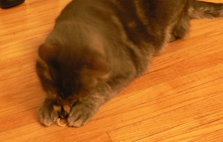 One of her toys, a spiral crochet hanging thing with a ball on the end was given to a friends kitty a couple of weeks ago. She says he LOVES it. Is it worth it to spend time on making toys for our furballs? YES!!!