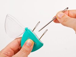 The stylish flip-top Pebble container is smooth and flat and easy to slip into your project bag, but large enough not to be mislaid. Each high quality needle slides into its own space in the Pebble, so it's easy to see if you've forgotten to replace it after use.